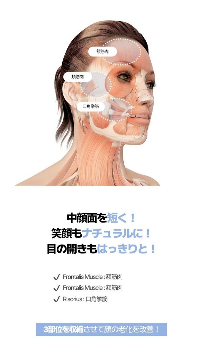 の2つを同時に照射し、筋肉・結合組織・皮膚へマルチアプローチが可能な最新のリフトアップ機器です。