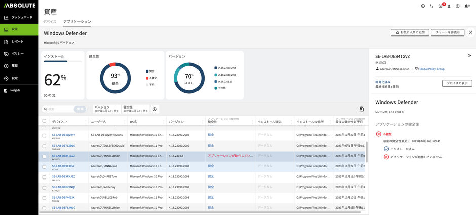 Application Health機能は、Absolute Secure Endpointの、Absolute Resilienceライセンスを契約しているお客様にご利用いただけます。