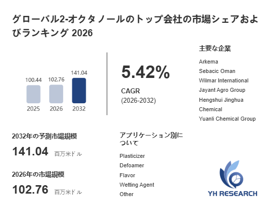 本記事は、YH Researchが発行したレポート「グローバル2-オクタノールのトップ会社の市場シェアおよびランキング 2026」 を紹介しています。