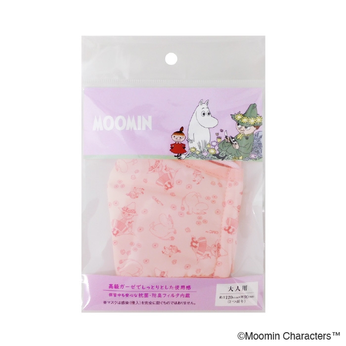 ムーミン、リトルミイ、スナフキンがお花畑で遊んでいるデザインの布マスクを新発売します。布マスクを作り続けて半世紀以上のマスク専門メーカーとして、デザインだけではなく機能性にも優れたマスクとなっています。