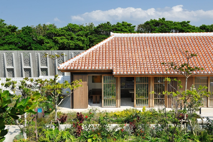 ゆがふキッチンは星のや沖縄の施設内にある、赤瓦の屋根が目印となる平屋の建物です。窓が大きくとられており、目の前に広がる海から、心地よい風が吹き抜けていきます。室内には広々とした作業スペース、オーブンやクッキングヒーターを備えたキッチンがあり、開放的な空間で調理プログラムに参加できます。