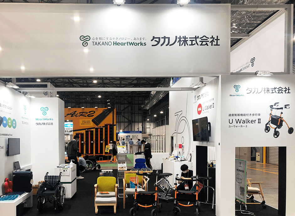 当展示会には、新製品の移乗ボード「のせかえくんスライド」、速度制御機能付き歩行車「U WalkerII(ユー ウォーカーツー)」をはじめとした各製品を紹介します。ぜひ、タカノブースへお立ち寄りください。