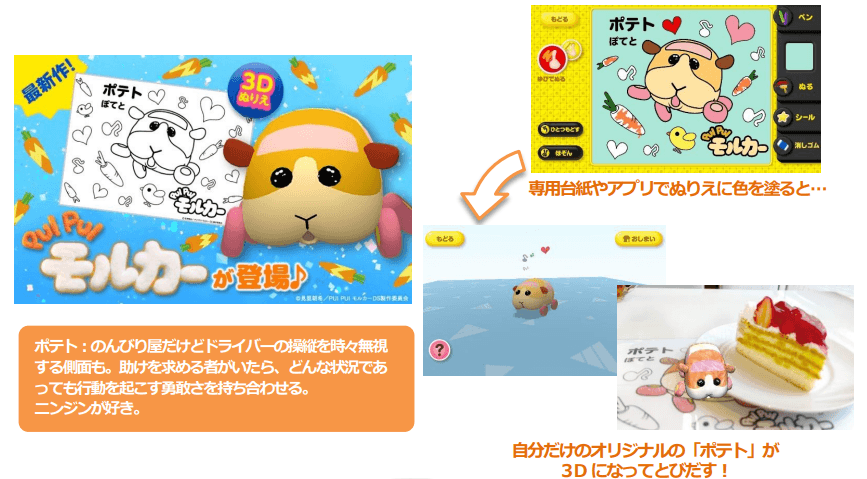 “国内外で大きな反響を呼んだ、大人気ストップモーションアニメ“ 『PUI PUI モルカー』の人気キャラクターが 新感覚 3D ぬりえアプリ【とびだすぬりえ】に登場!
