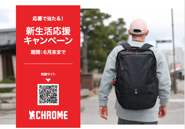新生活の通勤&通学バッグはCHROME!対象商品購入で豪華賞品が当たるキャンペーンを実施