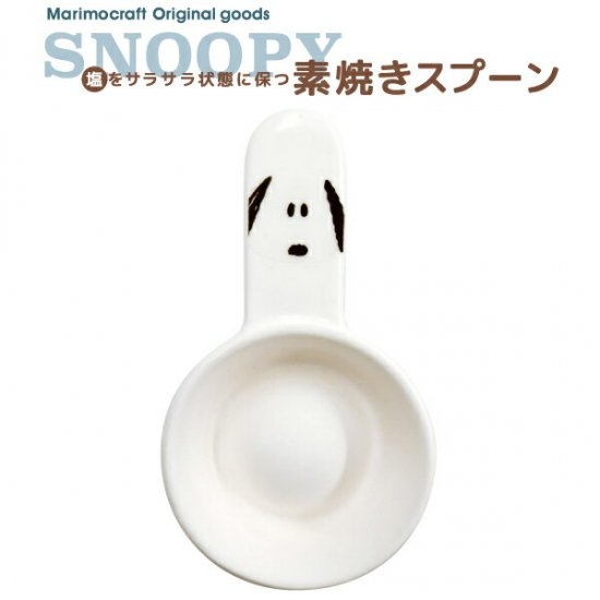 1つ目に紹介するのは、こちらのスヌーピーの素焼きスプーンです。このスプーンには、湿気を吸う特性があるんです。よって、塩をサラサラした状態に保つことができるんですよ♪塩を入れているケースに入れっぱなしにしておくだけで良いんです。とっても便利ですよね!