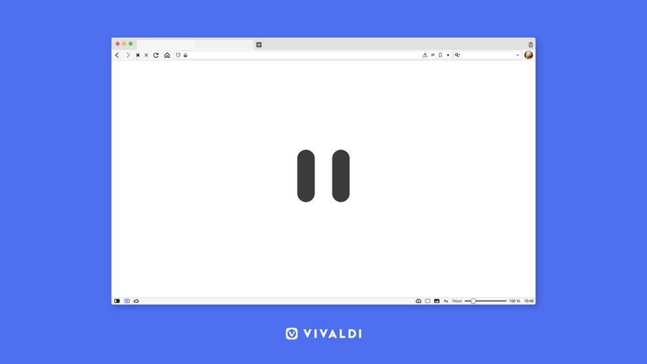 ブレイクモードにするのは簡単です。ステータスバーの左下にある一時停止ボタンを押すだけです。HTML5のオーディオやビデオをミュートして停止し、開いているページやパネルの中身を隠し、タブのサムネイルも真っ白になります。