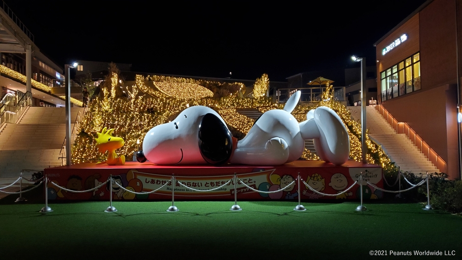 スヌーピーハピネスフロートの展示延長に合わせてイルミネーションもリニューアル!ハピネスフロートとのコラボでSNS映え間違いなし!