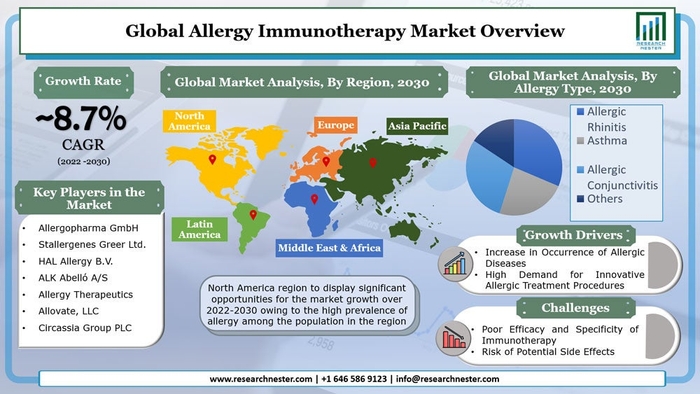 Research Nester Private Limitedは、アレルギー免疫療法市場の予測評価を提供する調査レポートを2022年02月 02日 に発刊しました。これは、アレルギー免疫療法市場の成長ドライバー、市場機会、課題、脅威など、いくつかの主要な市場ダイナミクス強調しています。