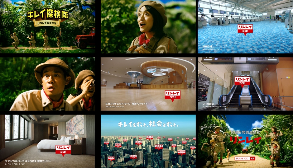 リンレイ、初の業務用製品CMをTVオンエア開始 キレイ探検隊が、社会の中にあるリンレイを探す