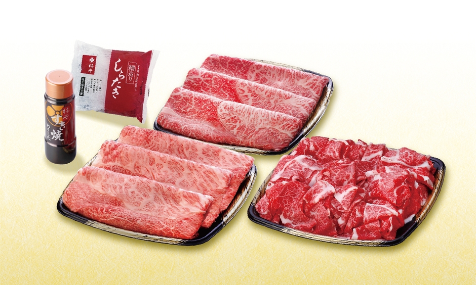 肉祭りの目玉商品である『松阪牛 よいにくすき焼 感謝袋』は、目利きがこだわり抜いた松阪牛の「肩ロース」と「肩」を300gずつ詰め合わせております。また、すき焼を看板メニューとする「料亭 柿安」を展開しているノウハウを活かし、ご家庭でも老舗の味わいをご堪能いただけるように開発した「柿安 精肉」のオリジナルわりしたと、しらたきもお付けいたします。