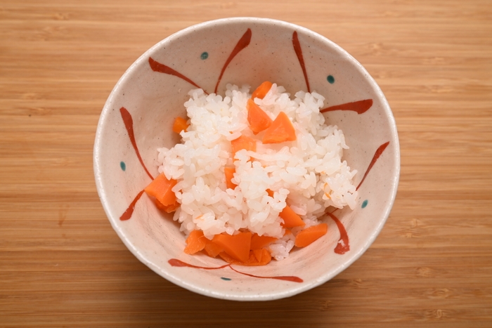 ブロッコリーやにんじん、新玉ねぎ、夏にはトマトやとうもろこしなど、旬の野菜をまるごと炊き込むことで、野菜から出る優しい甘みや旨みをたっぷりと感じられる、彩り豊かなごはんが楽しめます。炊き上がった野菜はしゃもじで簡単にほぐし混ぜることができ、規格外品でもおいしく召し上がれます。