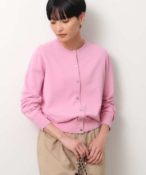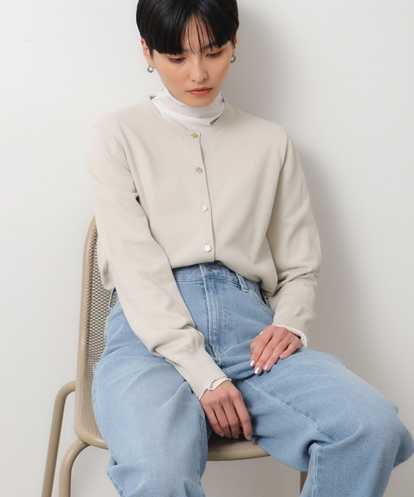 1枚あると便利な、ベーシックなクルーネックカーディガン。