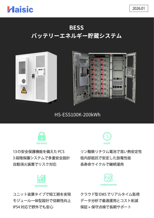 ハイセックジャパン株式会社は、国内における正式販売開始に先立ち、BESSソーラー蓄電システム(100kW / 200kWモデル)を自家消費用で導入いただけるモニター企業を “1社限定” で募集します