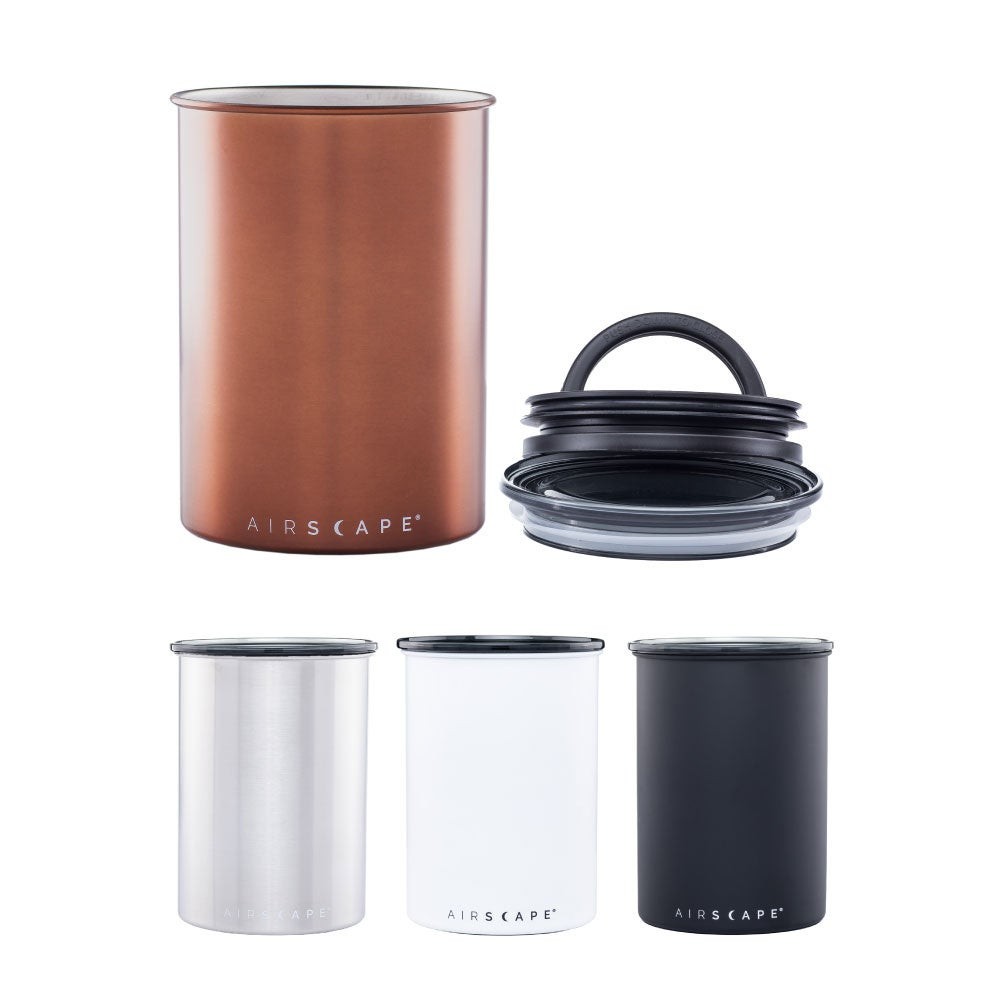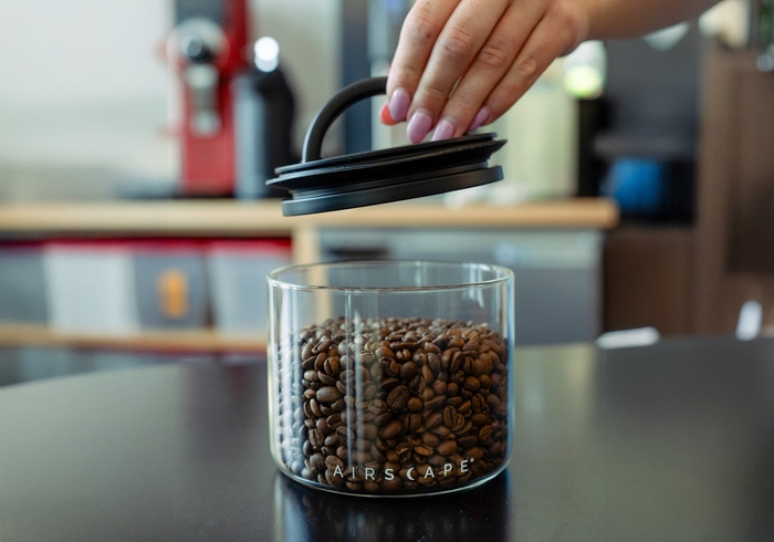 風味劣化の主な原因である酸素を除去することで、コーヒー豆をより長く新鮮に保つように設計されています。従来の密閉容器は内部に空気も閉じ込めてしまう設計ですが、一般的な「密閉型」容器とは異なり、Airscapeの機能は空気を容器外に排出することでコーヒーや乾物本来の風味、香り、そして品質を保ちます。(特許取得済み)