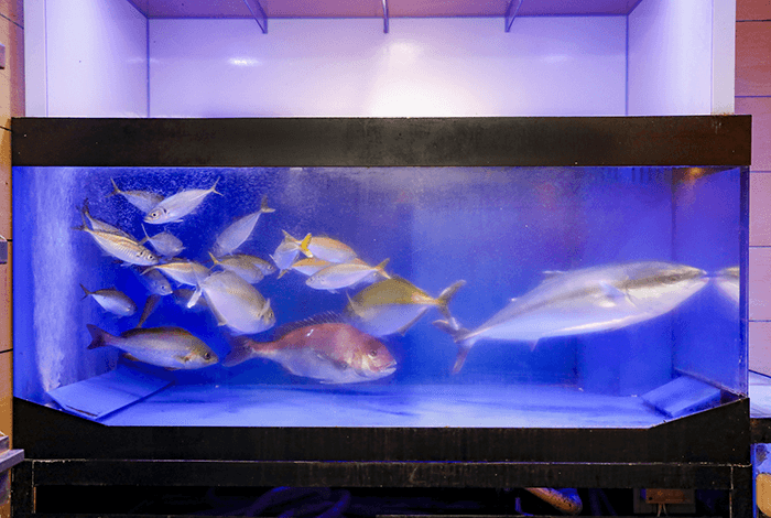 にぎり⻑次郎は、「いけす」からあげた活きのいい⿂をさばいたり、寿司をにぎったりする時のあふれる躍動感と、活気がありながら落ち着いてお⾷事いただける店内空間にこだわり、季節ならではの味わいを楽しめる旬の⿂介や野菜を活かしたメニューを提供することで、お客様から「旨い」の⼀⾔がいただけるよう技を磨き続けている、本物志向のグルメ廻転寿司店です。