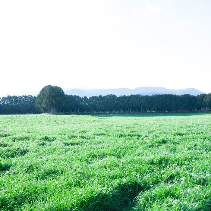 ①自然と100年以上共生し続ける中、自社畑の牧草・コーンにより乳牛を育て、牧場内の牧草を食べた牛の排泄物はたい肥原料の一部とし、再び土づくり、牧草づくりへと循環させる「持続可能な循環型酪農」に取り組み、環境負荷削減、食の安全、社会的価値の
