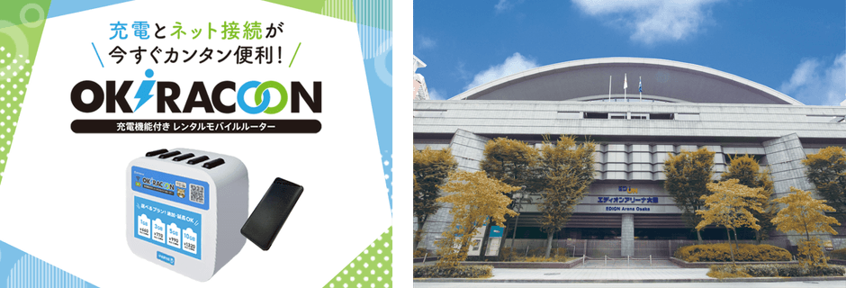 エヌ・ティ・ティ・メディアサプライが提供する、 充電機能付きWi-Fiレンタルサービス「OKiRACOON」、 屋内競技施設「エディオンアリーナ大阪(大阪府立体育会館)」 に設置 体育館内の全て場所でインターネット接続が可能に