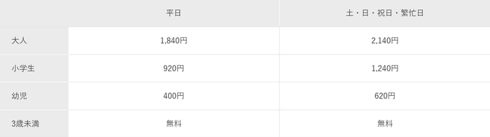 ※中学生以上は大人料金になります