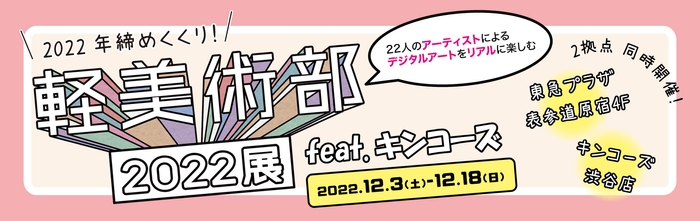 キンコーズ・ジャパン株式会社(本社:東京都港区、代表取締役社長:渡辺 浩基、以下 キンコーズ)は、インスタグラムでフォロワー13万人を超えるSNSアートキュレーションメディア「KEIVI-軽美術部(ケイビ)」が東急プラザ表参道原宿(東京都渋谷区)のデジタルアート専門のギャラリー「DiGARO(ディガロ)」で開催する「#軽美術部2022展feat.キンコーズ」とコラボレーションし、当社が運営するキンコーズ・渋谷店で2022年12月3日(土)~12月18日(日)の期間、SNSアーティストの作品を展示します。