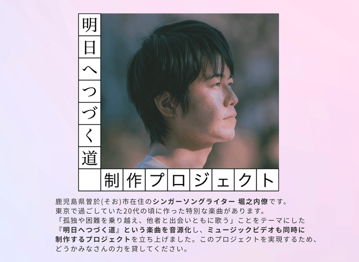 シンガーソングライター・堀之内僚による楽曲『明日へつづく道』制作プロジェクト