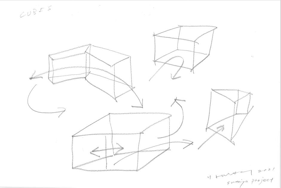柳幸典氏の構想によるすみや亀峰菴の大規模なリノベーションは2期に分けて行われます。まず200平米のロビー&ギャラリーの工事を完成させ、2021年4月26日からリニューアルオープンいたします。設計は、柳幸典氏と彼の建築チーム「YANAGI+ART BASE」(協力:広島大学八木研究室)が担っており、鉄の素材を大胆に使用するなど柳氏の作品らしさが存分に感じられる内装となります。その後、柳氏が手掛けた犬島精練所美術館(岡山県)における鉄の回廊を想起させるような140平米の特別宿泊室が今秋に完成する予定です。