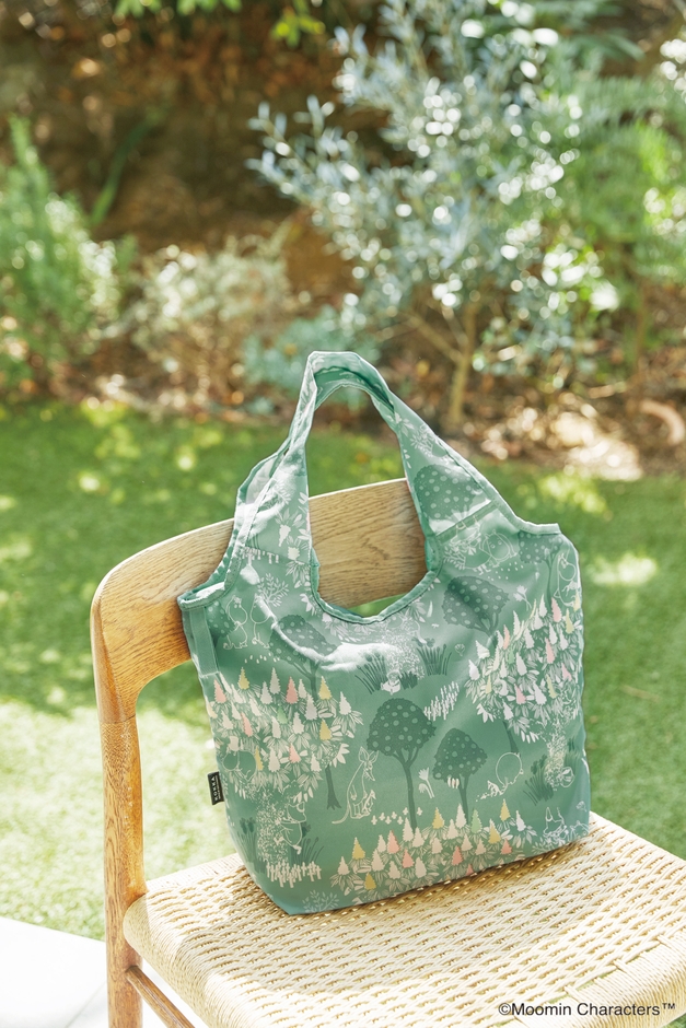 森の中にムーミンと仲間たちがたくさん描かれたおしゃれなデザインで、お出かけがもっと楽しくなります。
