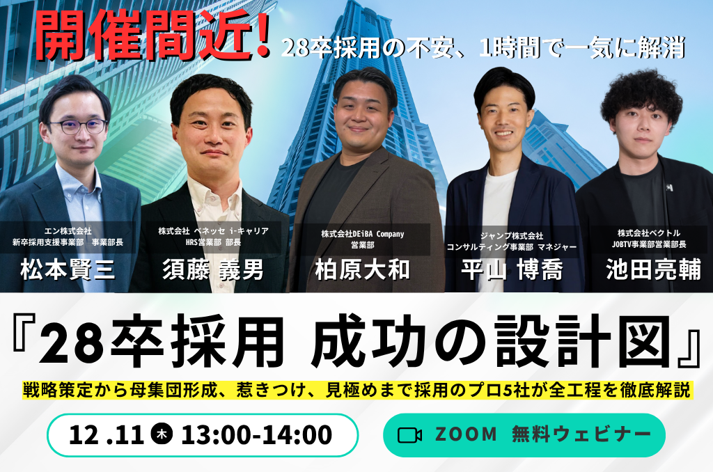 【開催間近!28卒採用の不安を“1時間で”解消】採用プロ5社が語る「28卒採用 成功の設計図」徹底解説セミナー開催