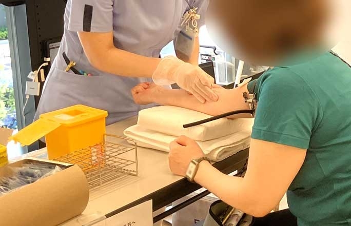 画像講座終了後には、希望者を対象に無料の腫瘍マーカー検査を実施しました。検査項目は、卵巣がんを調べる「CA125」、乳がんを調べる「CA15-3」、前立腺がんを調べる「PSA」の3種類で、女性だけでなく男性の健康意識向上にもつながる取り組みとなりました。