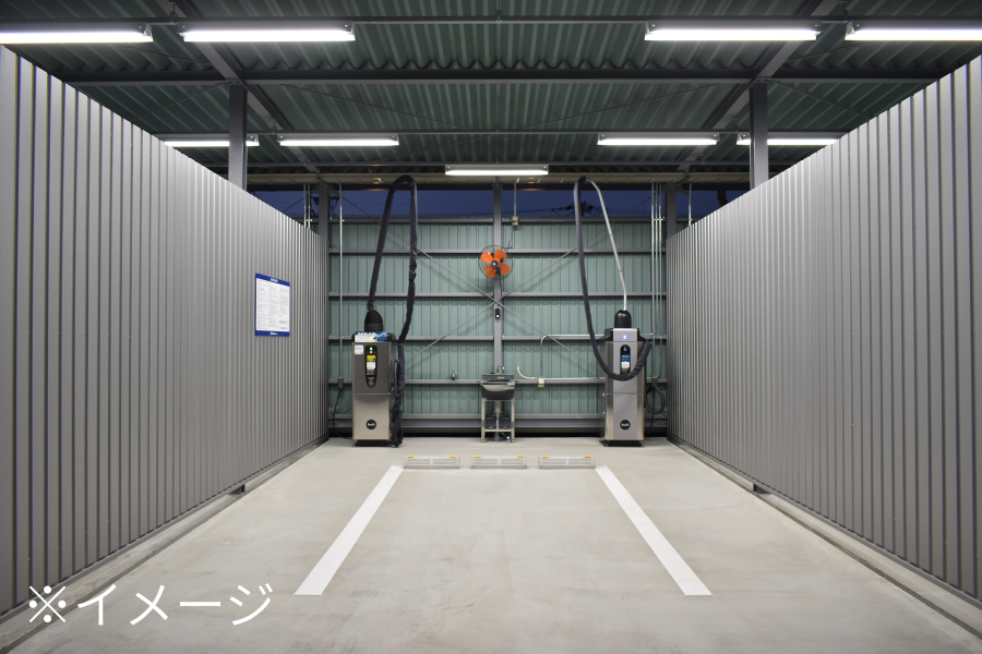 コインパーキングのようにご利用時間に対して課金する料金体制を採用しており、入場中は高圧洗浄機、クリーナー等の基本設備はもちろん、足場台、コンセント、バケツ、ホース、ペダル式シンクなど、手洗い洗車に必要な設備をすべてご自由にご利用いただけます。冬季には温水も提供しており、季節を問わず快適な洗車環境を提供します。