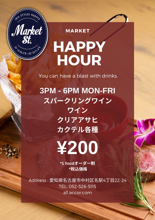 暑い夏も終わってしまいましたが、まだまだ残暑が残るこの季節。仕事上がりや早めに少し飲んでゆっくりしたい方、お友達と少し飲んで早めに帰宅したい方。皆様にスペシャルプライスでお届けする、マーケットストリートbyイビススタイルズ名古屋の美味しいお酒と1品をどうぞ。