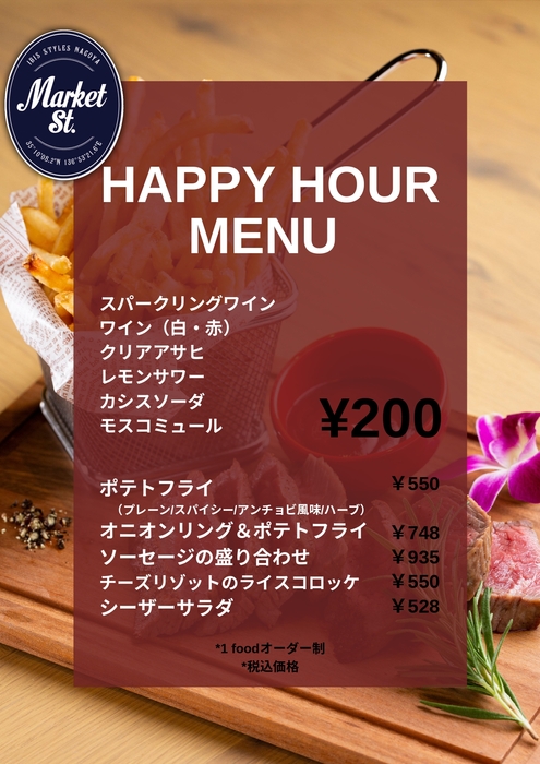 HAPPY HOUR 15時~18時 MON-FRI 1杯200円(税込)!!!*1FOODオーダー制