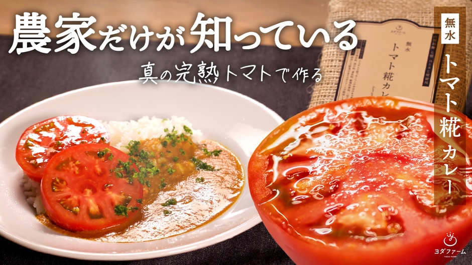 そこで私達ヨダファームは、自農園で生まれる規格外トマトを利用し、無水トマト糀カレーを開発し自身7度目となるプロジェクトにて先行予約販売を行っております。