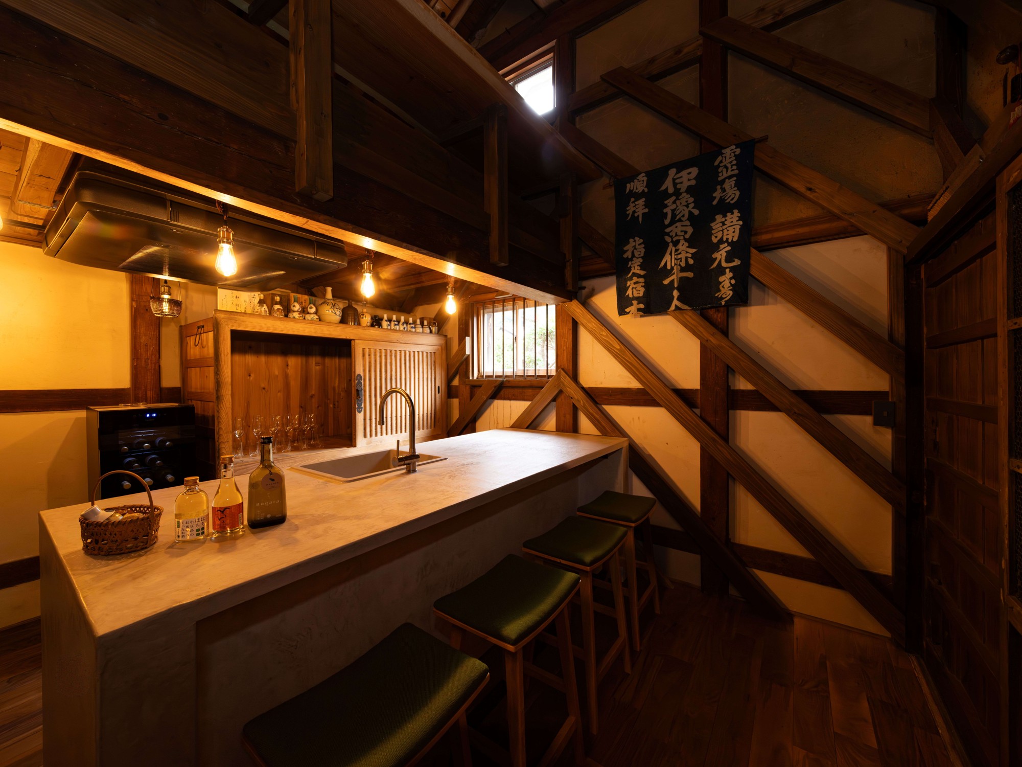 地域住民へ挨拶の際、元オーナーの「私がふがいないためにこの家を手放しました」という言葉が全てを物語ります。この言葉は今でも、加藤夫妻の胸に深く刻まれています。丁寧に守られた家屋、玄関アプローチの醤油重石などはそのまま残し、刻まれた歴史を宿泊体験として次世代へ継承。半露天風呂、サウナ、蔵BARを備えた特別な宿として生まれ変わりました。