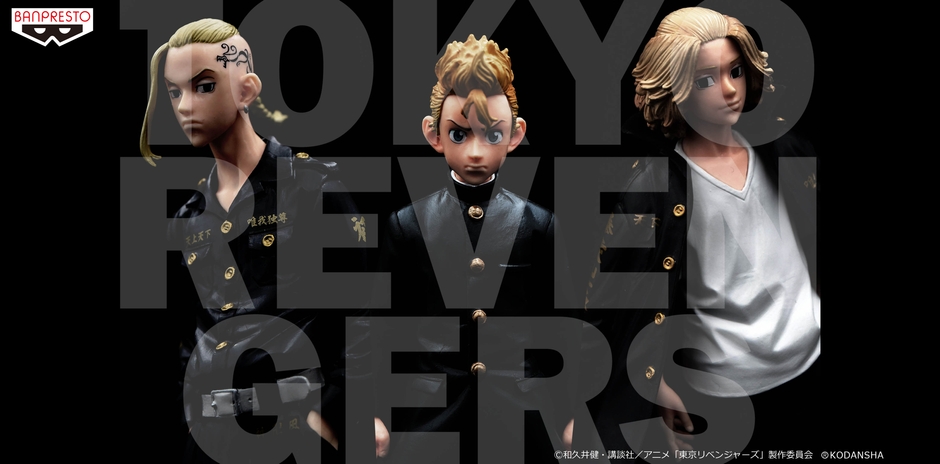 アニメ『東京リベンジャーズ』の主人公「花垣武道」をはじめ、初代総長の「佐野万次郎」や副総長の「龍宮寺堅」など、主要キャラクターたちのフィギュアがバンプレストブランドに初登場。