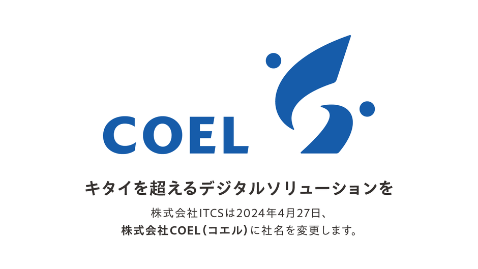 株式会社 ITCS(代表取締役社長:深見 和久、以下 ITCS)は、2024年4月27日より、社名を株式会社COEL(コエル)に変更することをお知らせいたします。