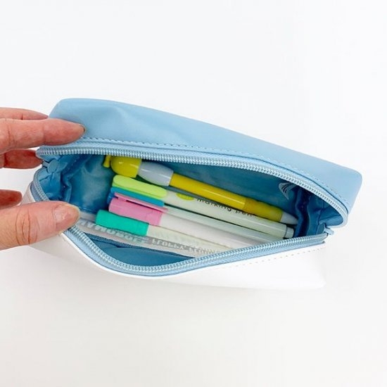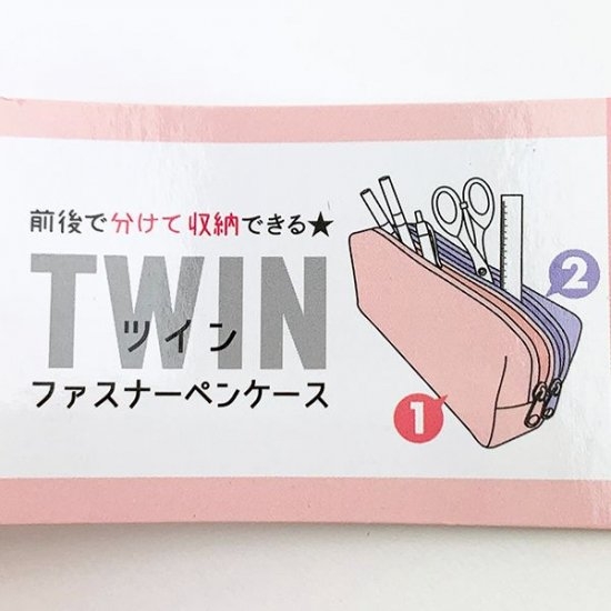 こちらはツインファスナータイプ。中に仕切りが付いていて2つのファスナーで分かれています。2ルームペンケースよりも少し縦幅が大きい印象です♪
