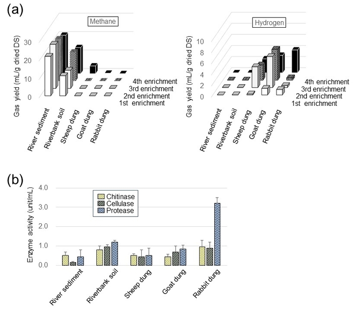 これ以上分解が進まない消化汚泥を分解してバイオガスを追加生産する複合微生物は初めてです。この複合微生物は糸状菌、原核生物、細菌、アーキアから構成されており、河川土壌や草食動物のフンから見つかりました。下水汚泥と水のみで、常温でバイオガスを生産します。全国の下水処理場から常時排出される消化汚泥から、天然ガスの代替となるバイオガスを生産する技術にこれら複合微生物を利用できないか、研究を続けています。実用化に向けた共同研究等を歓迎します。