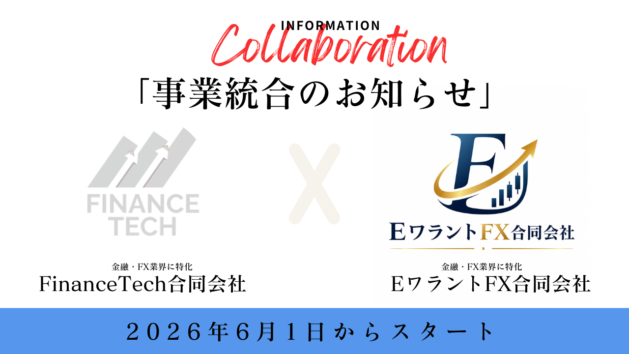 FinanceTech合同会社(以下「当社」)は、2026年6月1日付にて、当社の全事業をEワラントFX合同会社(以下「EワラントFX」)に統合することを決定いたしましたので、お知らせいたします。