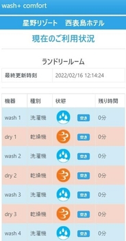スマートフォンからアクセスすると、ランドリールーム内の稼働状況が、利用前にも確認できる可視化サイトを用意しています。客室はもちろん、館内であれば滞在中いつでも確認ができるため、タイミングを見計らってランドリールームを利用できます。