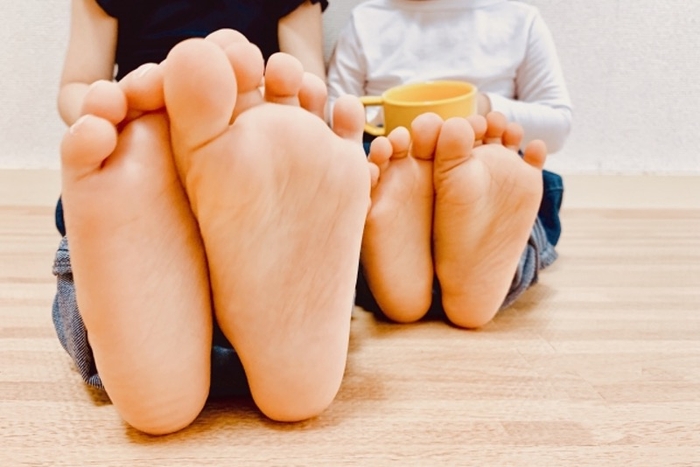 足のサイズは一人で測ることができますが、座った状態で足に定規やメジャーを当てようとすると、足に不要な力がかかってしまうことがあり正しく測れません。足のサイズを測る時は、リラックスした自然体で測る必要があります。
