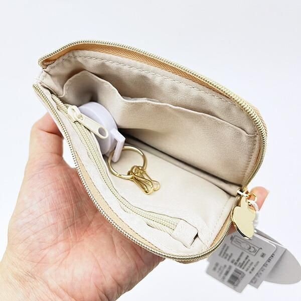 リール付でバッグに付けても便利に収納したものを取り出すことができそうです。キーフック3つと、ファスナー付ポケットも付いていて、小物の収納に便利です。サイズ:13cm×8cm×1cm 素材:合成皮革、ポリエステル