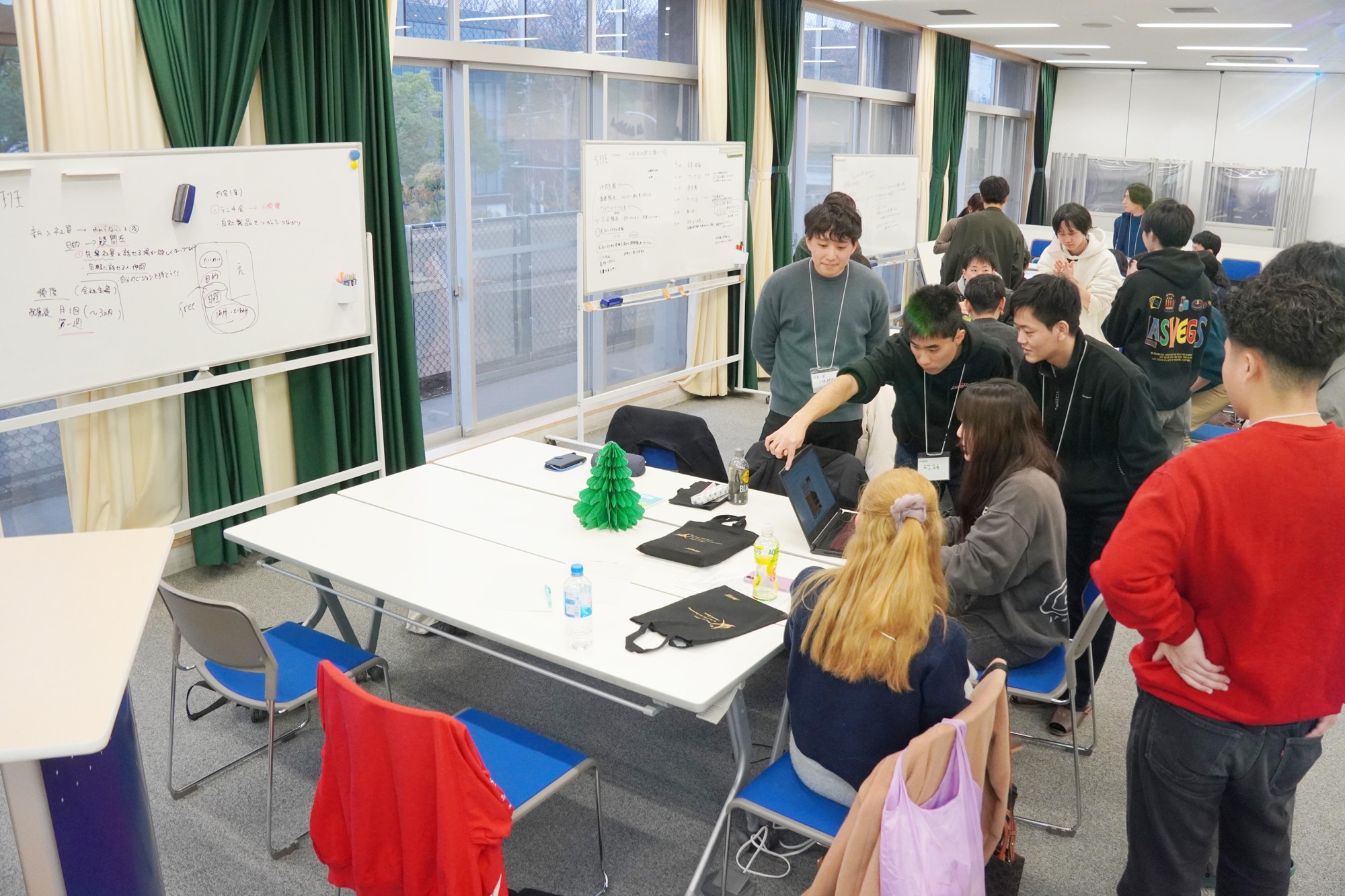 対話型討議セッションでは、[世代を越えて考える、新入社員へのピア・サポート]をテーマに、学校種や世代を越えた混成グループが編成され、新入社員向けの支援企画について検討が行われました。グループ代表の発表では、「新入社員にとって最も不安が大きい要因は人間関係にあり、その背景には良き仲間に出会えるかどうかという不安があると考え、同僚とのコミュニケーション機会を増やすために、謎解きイベントを取り入れた旅行企画を立案した」との意見が紹介され、新入社員の立場に寄り添った具体的な支援策が示されました。ファシリテーターを務めた春日井翔真さん(専攻科2年)は、「名城大学と愛知総合工科高校専攻科、卒業生と現役生という異なる立場が集まり、想像以上に多くの質の高い企画が生まれた。ピア・サポートの輪の広がりを改めて実感した」と語りました。