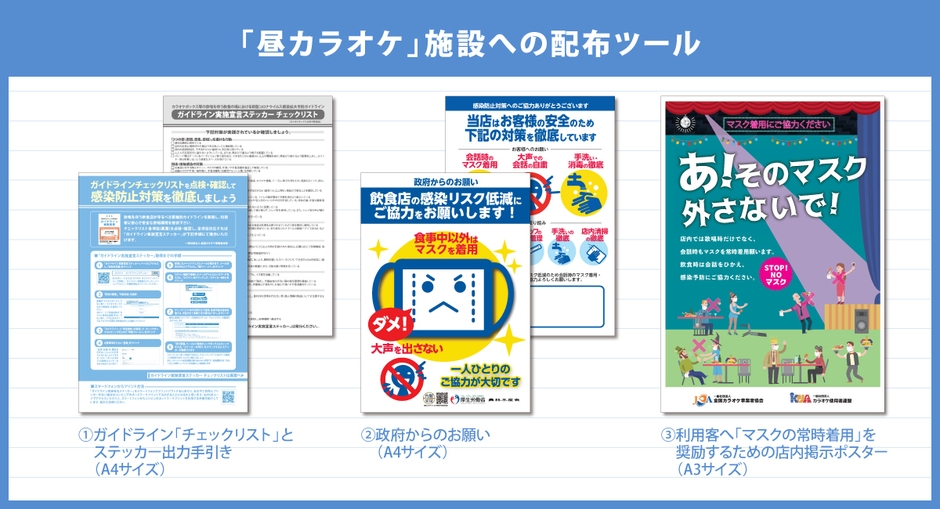 具体的には、カラオケ機器設置事業者である当会会員が、該当施設を直接訪問し、業種別ガイドラインの再徹底、飲食店の感染予防対策強化と常時マスク着用を呼び掛けます。