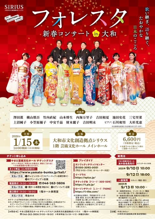 大和市文化創造拠点シリウス・やまと芸術文化ホール(神奈川県大和市大和南1-8-1)は、2026年1月15日(木)『フォレスタ 新春コンサートin大和』を開催します。