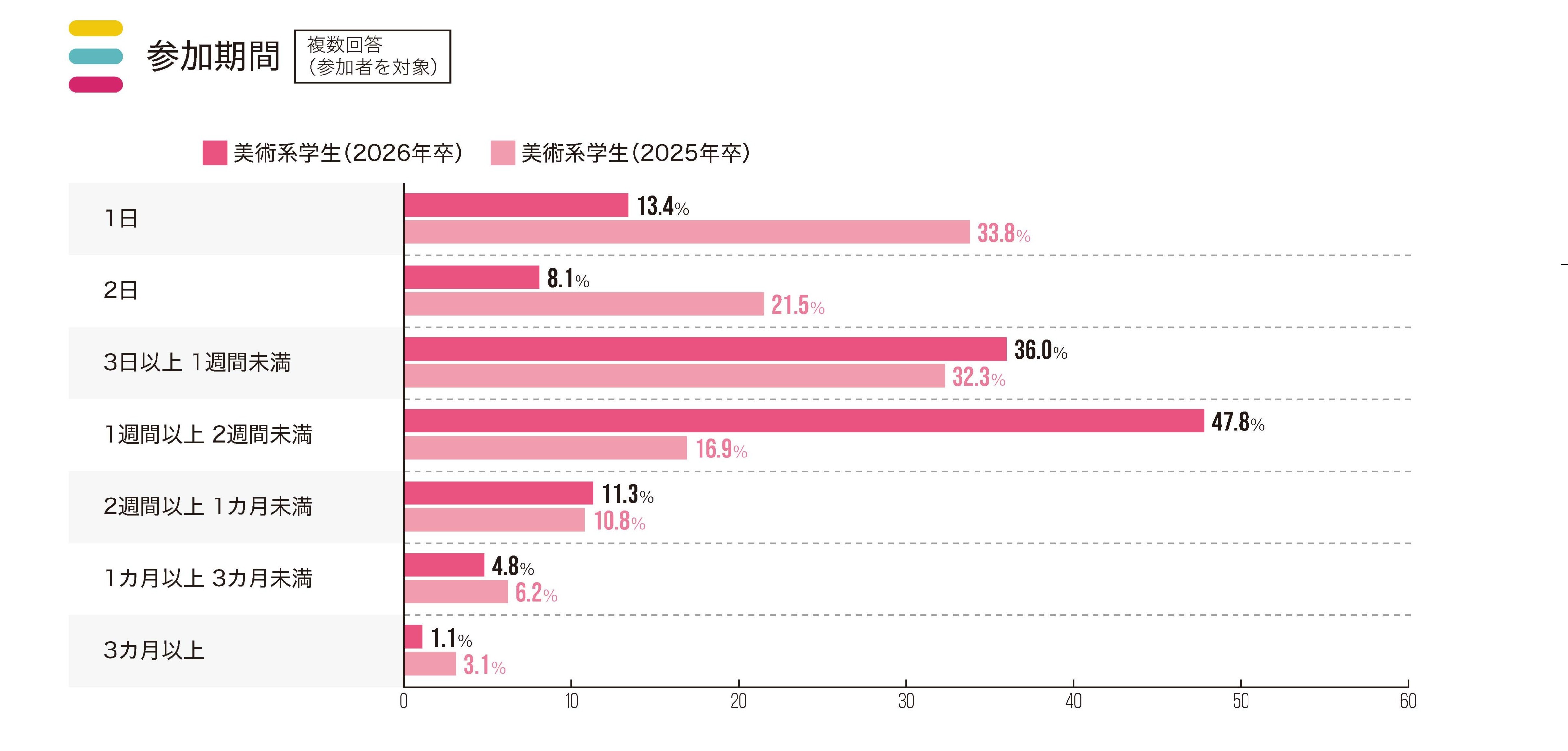 合わせて確認しておきたいのは、26年卒美術系学生のインターンシップ「参加期間」です。