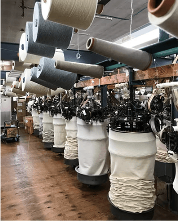 ドレステリアの吊裏毛シリーズの生地は、明治時代の終わりから大正時代の初めにかけて日本に伝わったという貴重な『吊り編み機』を使用し、じっくりゆっくりと作られています。
