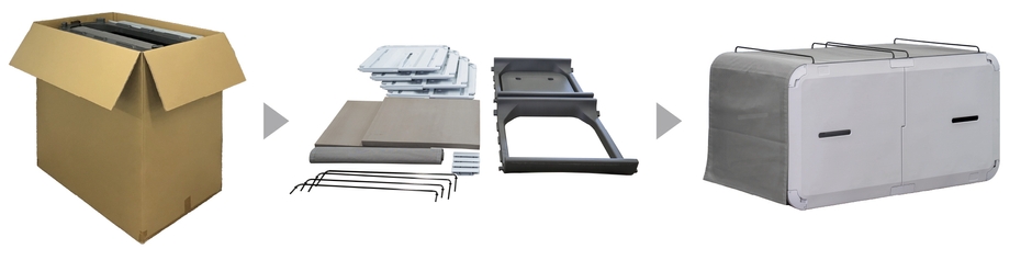 簡易組み立て式スリープカプセル F-Podは、「避難場所での快適性向上」と「繰り返し使える」をコンセプトに開発したカプセルベッドです。