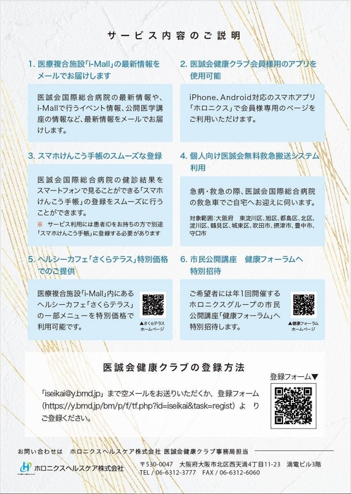 医療法人医誠会(本社:大阪府大阪市、代表者:谷 幸治)が運営する医誠会国際総合病院を含む医療複合施設「i-Mall」では、2024年1月よりi-Mallを便利にお得に利用できる会員サービス「医誠会健康クラブ」(運営会社:ホロニクスヘルスケア株式会社)のサービス内容をリニューアルしました。これまでのサービスをバージョンアップし、医誠会国際総合病院に適した新たな特典を追加。より多くの皆さまに、より便利でお得にi-Mallをご利用いただけるようになります。