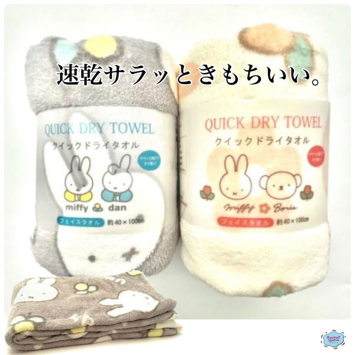 今回はミッフィーの速乾フェイスタオルとバスタオルをご紹介しました。いかがでしたか?皆様に素敵なキャラクターとの出会いがありますように、、、
