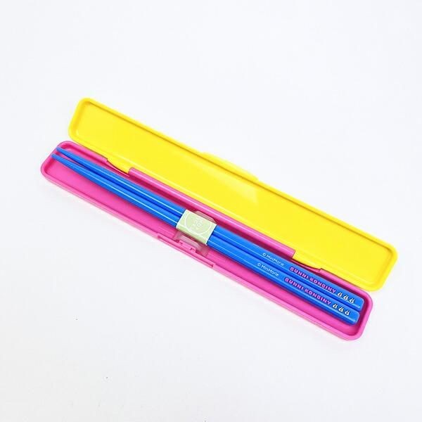 お箸の持ち手の部分までキャラクターがデザインされておりごはんももっと進みそうです、、!防音クッションが付いているので、持ち運びの際にカチャカチャ音が鳴りにくいのが嬉しいポイントです。食洗機使用可【箸の長さ:18cm】サイズ:19cm×3.1cm×1.3cm 素材:AS樹脂100度、ABS樹脂100度、メタクリル樹脂100度、シリコーンゴム140度